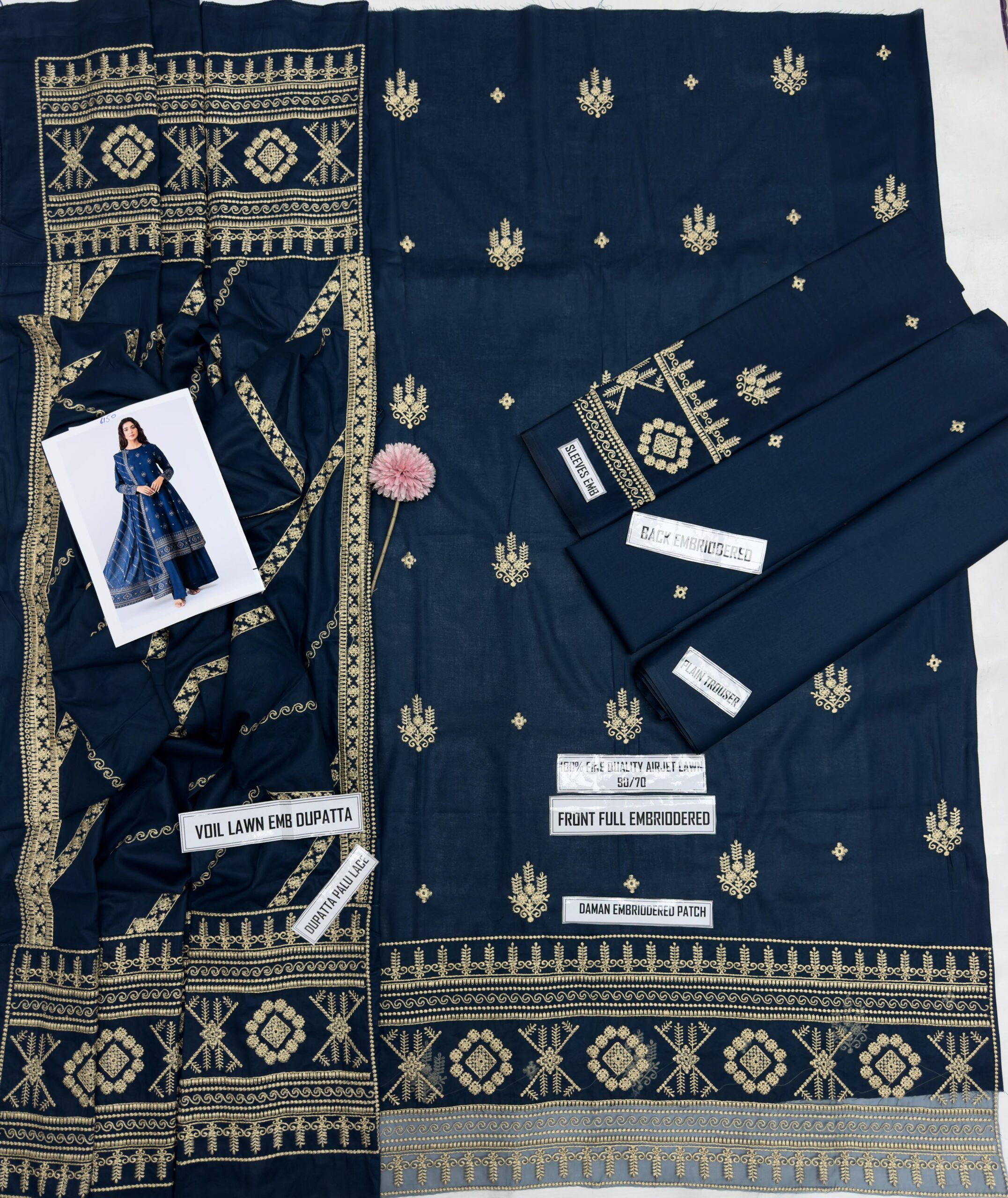 Voil Lawn fully heavy Emb dupatta with four side Emb borders RTW stiched